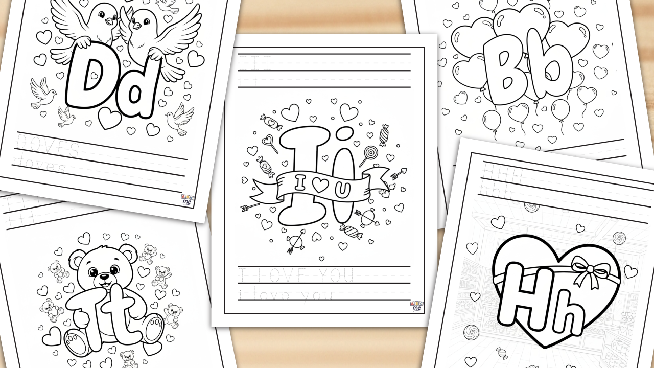 ABCme’s Valentines Day free ABC coloring pages let families preview our custom coloring book experie...